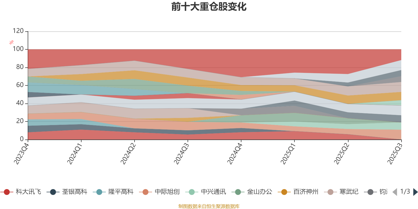 该基金持股集中度较高,近2年前十大重仓股集中度长期超过60%。截至2025年三季度末,基金十大重仓股分别是兆易创新、新易盛、中际旭创、海光信息、天孚通信、中兴通讯、恒玄科技、乐鑫科技、鸣志电器、绿的谐波。
