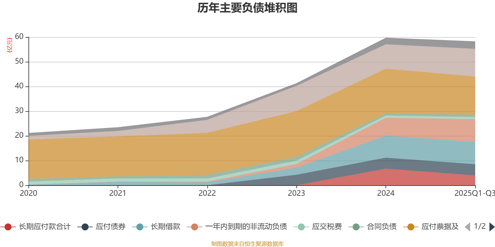 负债重大变化方面,截至2025年三季度末,公司长期应付款合计较上年末减少40.82%,占公司总资产比重下降3.34个百分点;应付票据及应付账款较上年末减少14.3%,占公司总资产比重下降3.02个百分点;一年内到期的非流动负债较上年末增加25.99%,占公司总资产比重上升2.43个百分点;短期借款较上年末增加13.55%,占公司总资产比重上升1.78个百分点。