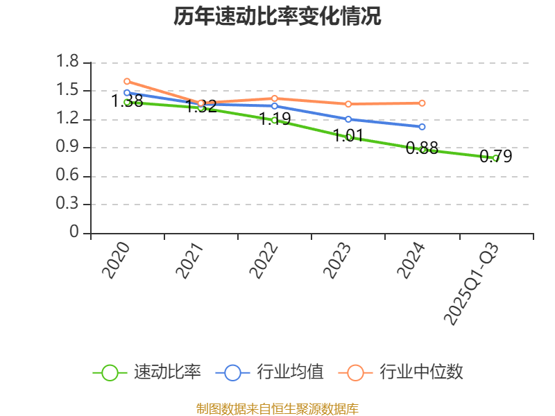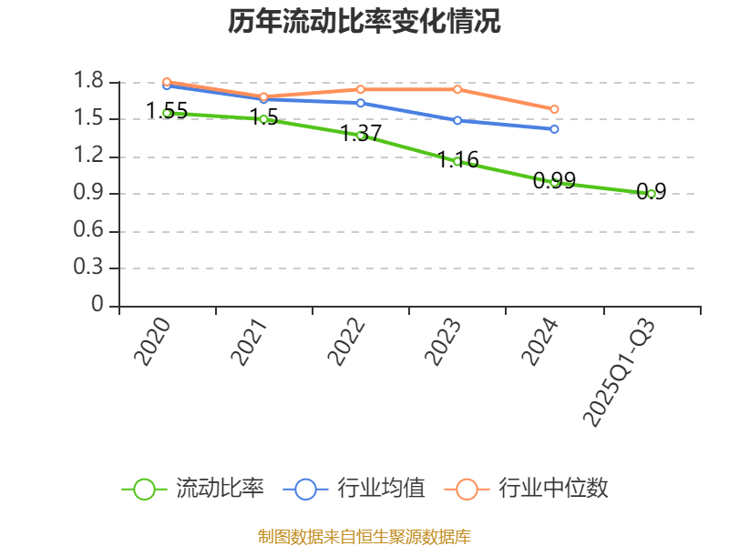 2025年前三季度,公司流动比率为0.9,速动比率为0.79。