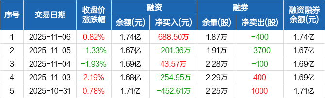 川仪股份融资融券信息显示,2025年11月6日融资净买入688.5万元;融资余额1.74亿元,较前一日增加4.13%。