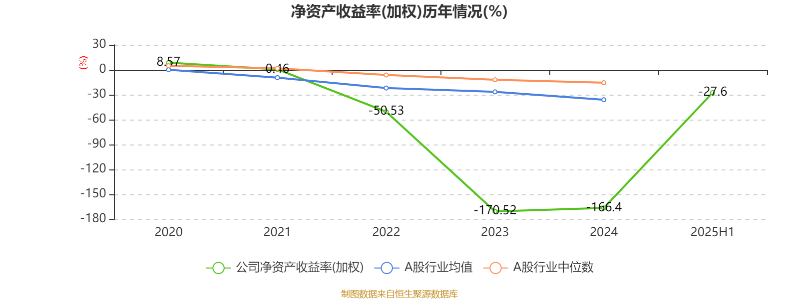 2025年上半年,公司平均净资产收益率为-27.6%,较上年同期下降23.47个百分点。
