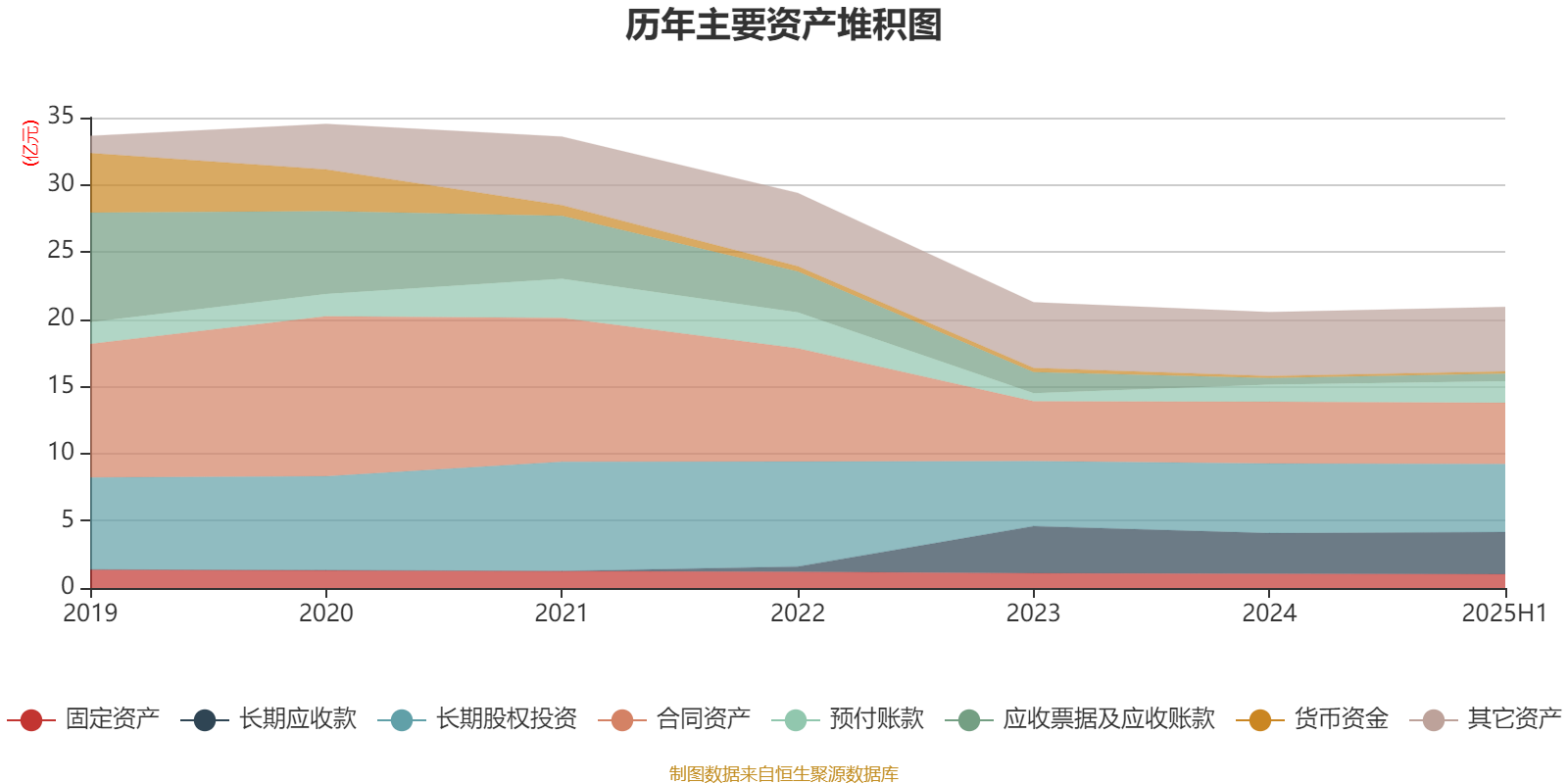 资产重大变化方面,截至2025年上半年,公司预付账款较上期末增加26.94%,占公司总资产比重上升1.52个百分点;长期股权投资较上期末减少2.05%,占公司总资产比重下降0.99个百分点;合同资产较上期末减少1.19%,占公司总资产比重下降0.69个百分点;应收票据及应收账款较上期末增加14.73%,占公司总资产比重上升0.3个百分点。