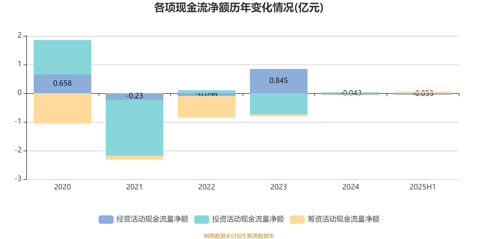 2025年上半年,公司经营活动现金流净额为-531.1万元;筹资活动现金流净额580.8万元;投资活动现金流净额15.7万元。