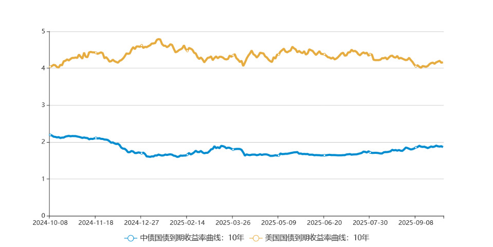 截至北京时间9月30日18时,中美10年期基准国债利差缩小至236.49bp,较前一周五缩小0.48bp。