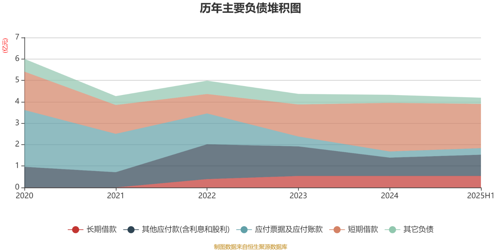 负债重大变化方面,截至2025年上半年,公司其他应付款(含利息和股利)较上期末增加15.85%,占公司总资产比重上升11.59个百分点;长期借款较上期末没有变化,占公司总资产比重上升2.56个百分点;应付票据及应付账款较上期末增加6.67%,占公司总资产比重上升2.44个百分点;租赁负债较上期末减少20.55%,占公司总资产比重下降1.27个百分点。