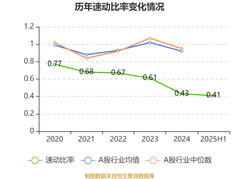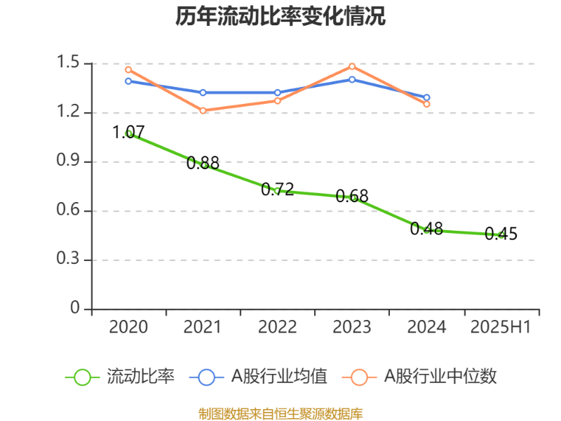 2025年上半年,公司流动比率为0.45,速动比率为0.41。