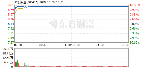 以下是太极实业在北京时间10月9日09:31分盘口异动快照:10月9日,