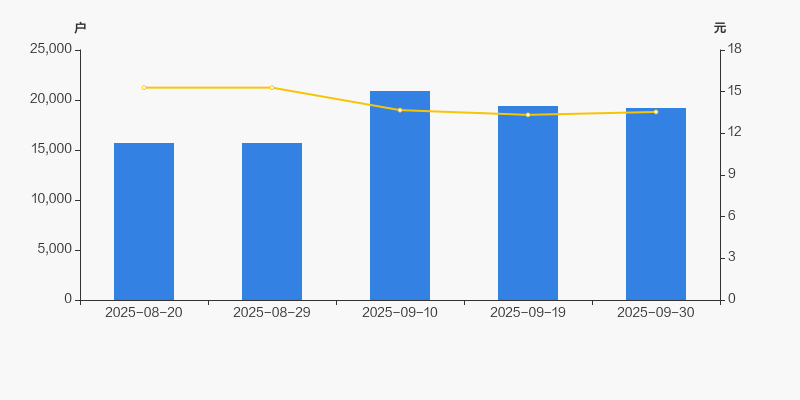 2025年8月20日至今,公司股东户数显著增长,区间涨幅为22.29%。2025年8月20日至2025年9月30日区间股价下降11.45%。