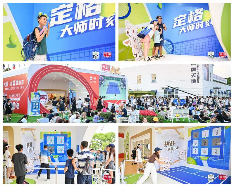 拍照互动区的网球版“人生四格照”成了球迷们的“打卡必选项”,拿起网球道具、摆出挥拍姿势,按下快门就能一键生成带着赛事记忆的专属合影;挑战区的“光明网球大师击球挑战赛”更让网球爱好者过足瘾,模拟赛场还原真实赛事场景,瞬间点燃竞技热情,而排行榜首位的选手还能收获张之臻联名球拍套装。