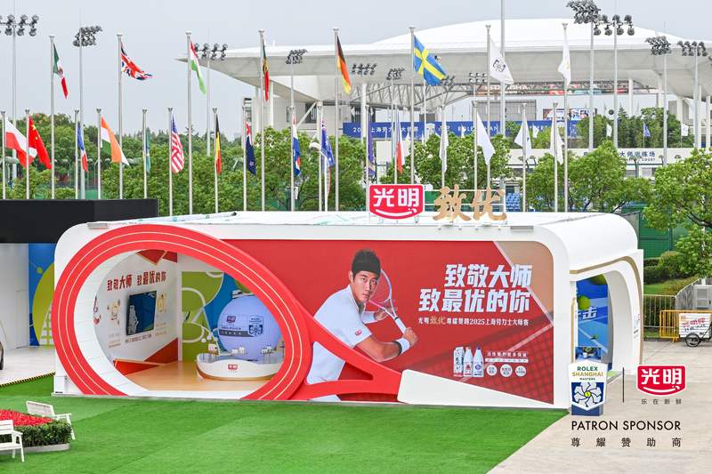 更值得关注的是,光明乳业还专为本次上海大师赛推出了限定款包装的光明致优全鲜乳,包装上张之臻挥拍的动感瞬间与赛事氛围完美契合,拿在手中既是饮品,也是一份独特的赛事周边,吸引不少球迷争相选购。