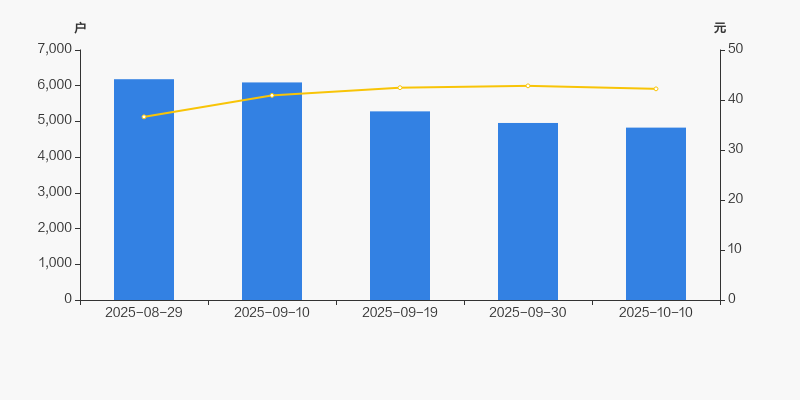 2025年8月29日至今,公司股东户数显著下降,区间跌幅为21.92%。2025年8月29日至2025年10月10日区间股价上涨15.29%。