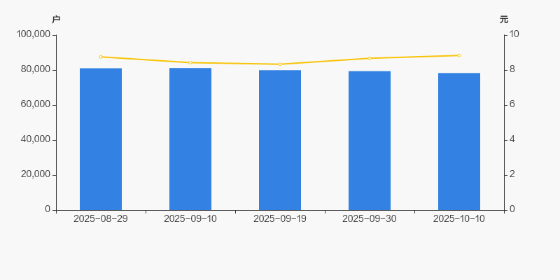 自2025年9月10日以来,公司股东户数连续3期下降,截至目前减幅为3.52%。2025年9月10日至2025年10月10日区间股价上涨4.87%。