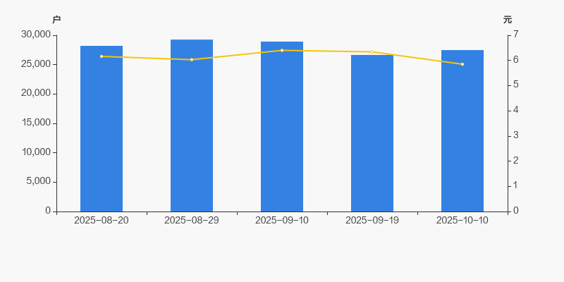 2025年8月20日至今,公司股东户数有所下降,区间跌幅为2.56%。2025年8月20日至2025年10月10日区间股价下降5.03%。