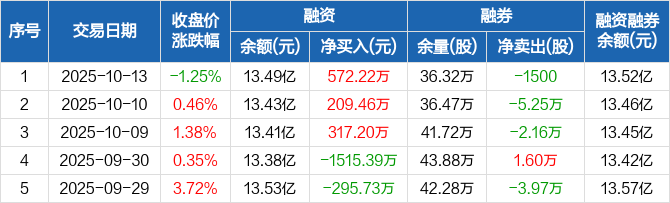 融资方面,当日融资买入3883.78万元,融资偿还3311.56万元,融资净买入572.22万元,连续3日净买入累计1098.88万元。融券方面,融券卖出600股,融券偿还2100股,融券余量36.32万股,融券余额316.71万元。融资融券余额合计13.52亿元。
