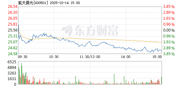 航天晨光盘中快速回调,5分钟内跌幅超过2%,截至9点30分,报25.21元,成交1379.55万元,换手率0.13%。