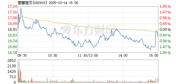 蒙娜丽莎盘中快速上涨,5分钟内涨幅超过2%,截至9点31分,报17.26元,成交296.80万元,换手率0.08%。