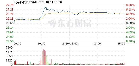以下是雄帝科技在北京时间10月14日09:32分盘口异动快照:10月14日,