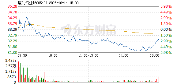 以下是厦门钨业在北京时间10月14日09:32分盘口异动快照:10月14日,