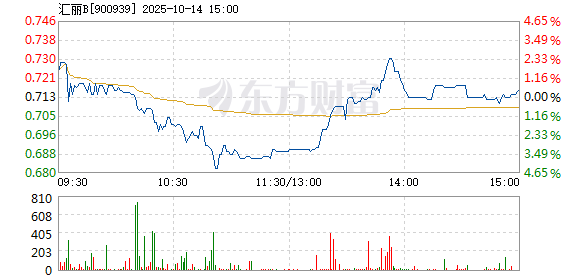 以下是汇丽B在北京时间10月14日09:35分盘口异动快照:10月14日,汇丽B盘中快速回调,5分钟内跌幅超过2%,截至9点35分,报0.71元,成交6.43万元,换手率0.10%。