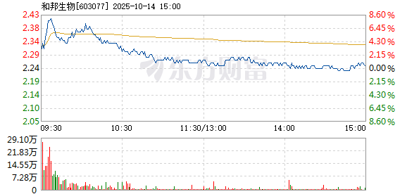 以下是和邦生物在北京时间10月14日09:40分盘口异动快照:10月14日,