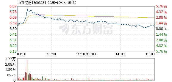 中来股份盘中涨幅达5%,截至9点46分,报6.85元,成交7042.60万元,换手率1.10%。