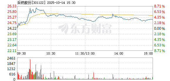 采纳股份盘中涨幅达5%,截至9点48分,报25.46元,成交1819.48万元,换手率0.97%。