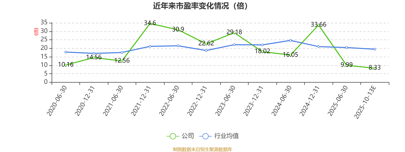以本次披露业绩预告均值计算,公司近年市盈率(TTM)图如下所示:
