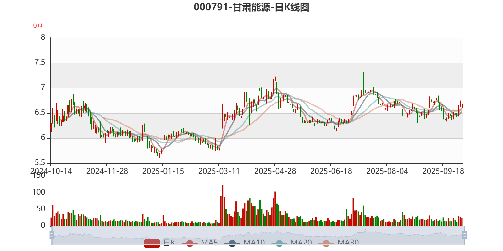 中证智能财讯甘肃能源(000791)10月13日晚间披露业绩预告,预计2025年前三季度归母净利润15.5亿元至16亿元,同比增长11.86%-15.47%;扣非净利润预计15.4亿元至15.9亿元,同比增长152.61%-160.81%;基本每股收益0.4778元/股-0.4932元/股。以10月13日收盘价计算,甘肃能源目前市盈率(TTM)约为8.25倍-8.41倍,市净率(LF)约1.57倍,市销率(TTM)约1.9倍。