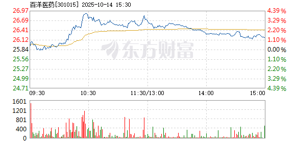 以下是百洋医药在北京时间10月14日10:25分盘口异动快照:10月14日,