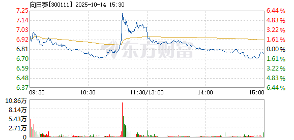 向日葵盘中快速反弹,5分钟内涨幅超过2%,截至11点03分,报6.91元,成交5.44亿元,换手率6.16%。