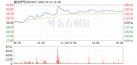 以下是新天然气在北京时间10月14日11:06分盘口异动快照:10月14日,