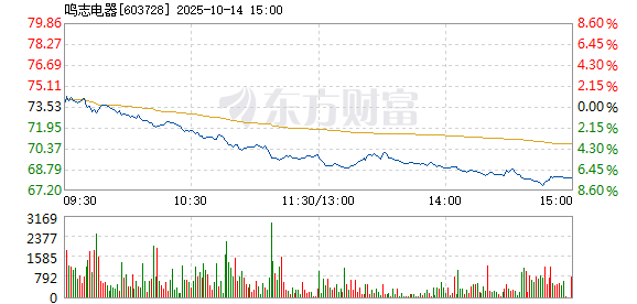 鸣志电器10月14日盘中跌幅达5%