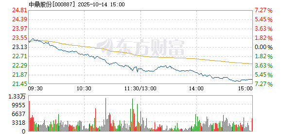 中鼎股份盘中跌幅达5%,截至14点00分,报21.97元,成交12.01亿元,换手率4.04%。