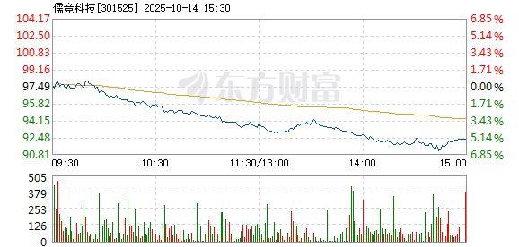 盘中跌幅达5%,截至14点00分,报92.61元,成交1.82亿元,换手率3.88%。