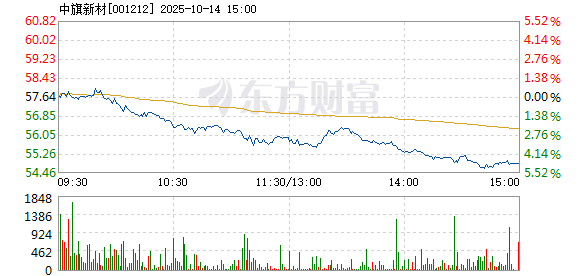 盘中跌幅达5%,截至14点40分,报54.75元,成交3.56亿元,换手率3.92%。