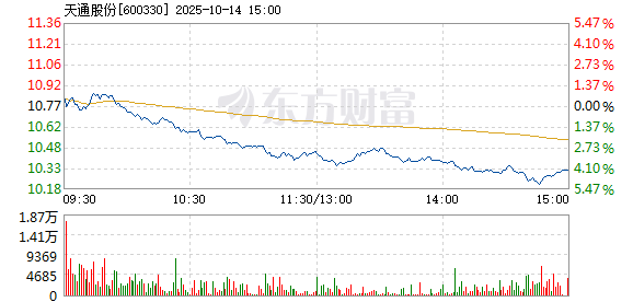 天通股份10月14日盘中跌幅达5%