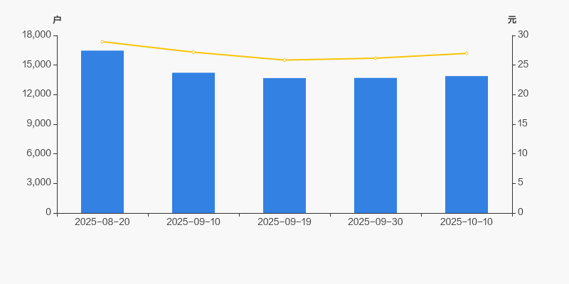2025年8月20日至今,公司股东户数显著下降,区间跌幅为15.68%。2025年8月20日至2025年10月10日区间股价下降6.80%。