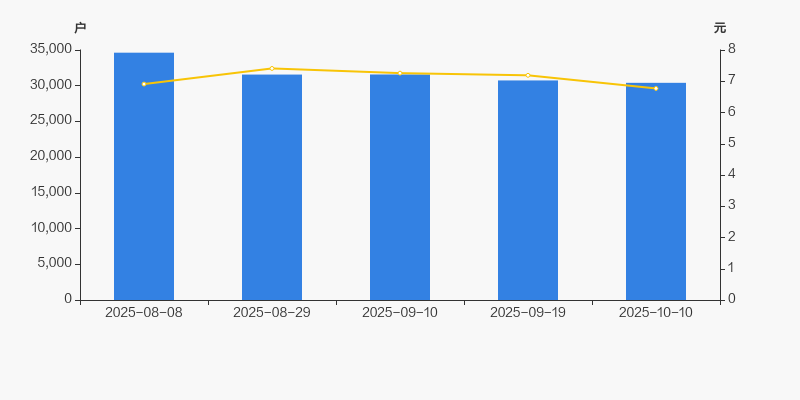 2025年8月8日至今,公司股东户数显著下降,区间跌幅为12.19%。2025年8月8日至2025年10月10日区间股价下降2.03%。