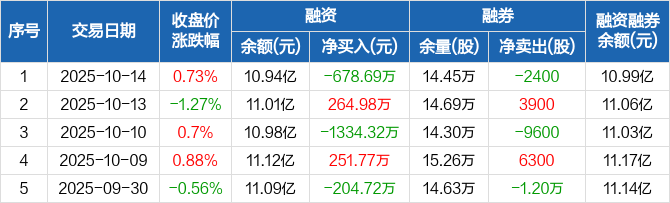 同仁堂融资融券信息显示,2025年10月14日融资净偿还678.69万元;融资余额10.94亿元,较前一日下降0.62%。