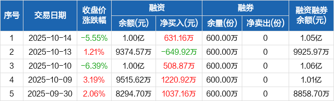 芯片ETF龙头融资融券信息显示,2025年10月14日融资净买入631.16万元;融资余额1亿元,较前一日增加6.73%。