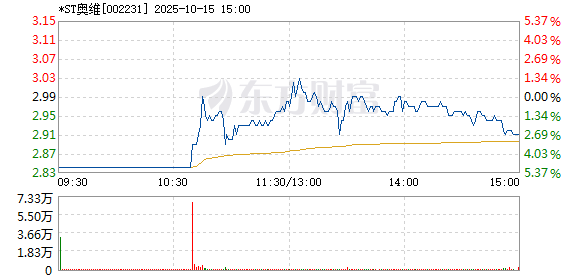 以下是*ST奥维在北京时间10月15日09:26分盘口异动快照:10月15日9点26分,