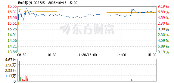 以下是跃岭股份在北京时间10月15日09:32分盘口异动快照:10月15日9点32分,