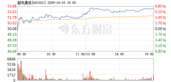 超讯通信盘中快速上涨,5分钟内涨幅超过2%,截至9点35分,报51.8元,成交1.24亿元,换手率1.54%。