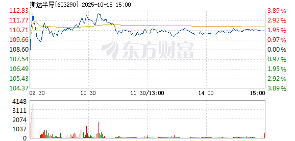 斯达半导盘中快速回调,5分钟内跌幅超过2%,截至9点37分,报109.78元,成交1.93亿元,换手率0.72%。