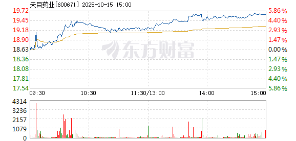 以下是天目药业在北京时间10月15日09:40分盘口异动快照:10月15日,