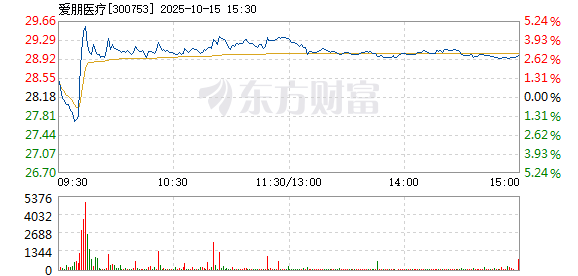 爱朋医疗盘中快速反弹,5分钟内涨幅超过2%,截至9点41分,报28.44元,成交1981.49万元,换手率0.80%。