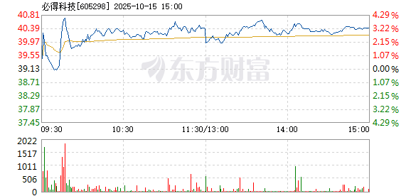 必得科技盘中快速反弹,5分钟内涨幅超过2%,截至9点43分,报39.95元,成交2871.65万元,换手率0.39%。