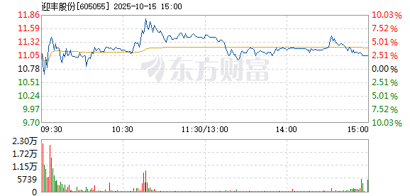 迎丰股份盘中快速回调,5分钟内跌幅超过2%,截至9点44分,报10.91元,成交1.59亿元,换手率3.23%。