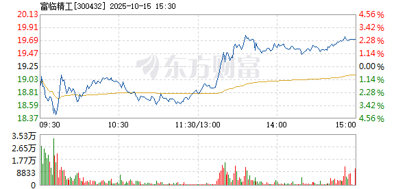 富临精工盘中快速反弹,5分钟内涨幅超过2%,截至9点44分,报18.84元,成交5.30亿元,换手率1.68%。