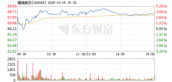 福瑞股份盘中快速反弹,5分钟内涨幅超过2%,截至9点44分,报67.33元,成交7092.32万元,换手率0.46%。